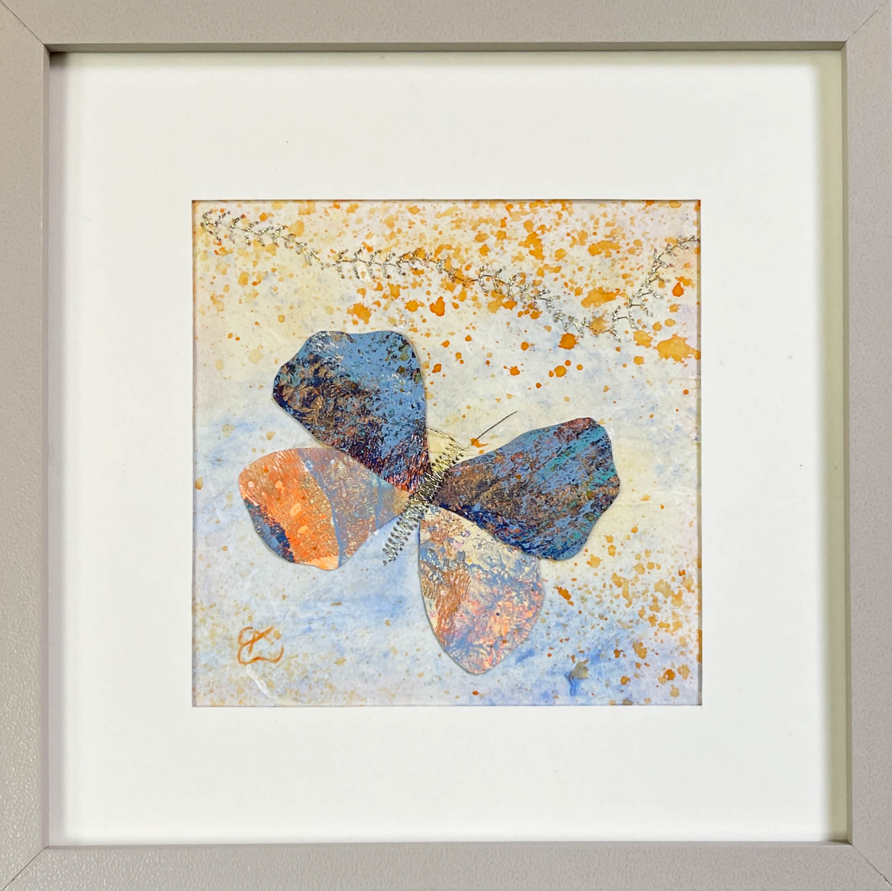 Schmetterling Collage Acryl/Aquarell mit Goldnaht
